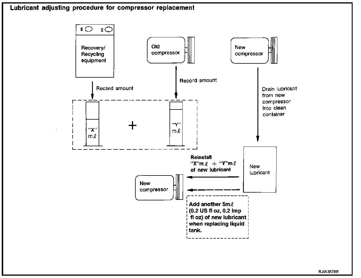 Do not add this 5 m (0.2 US fl oz., 0.2 Imp fl oz.) of lubricant when replacing the compressor only.