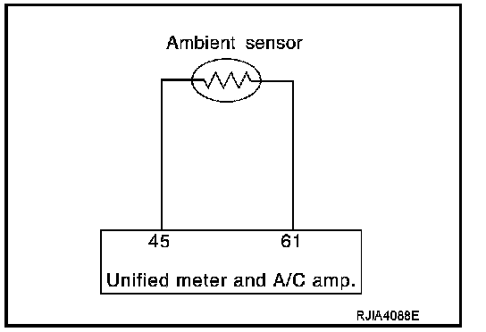 SYMPTOM: Ambient sensor circuit is open or shorted. (21 or -21 is indicated on unified meter and A/C amp. as a result of performing self-diagnosis STEP-2.)