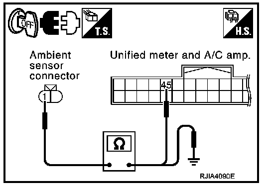 4.CHECK CIRCUIT CONTINUITY BETWEEN AMBIENT SENSOR AND UNIFIED METER AND A/C AMP.
