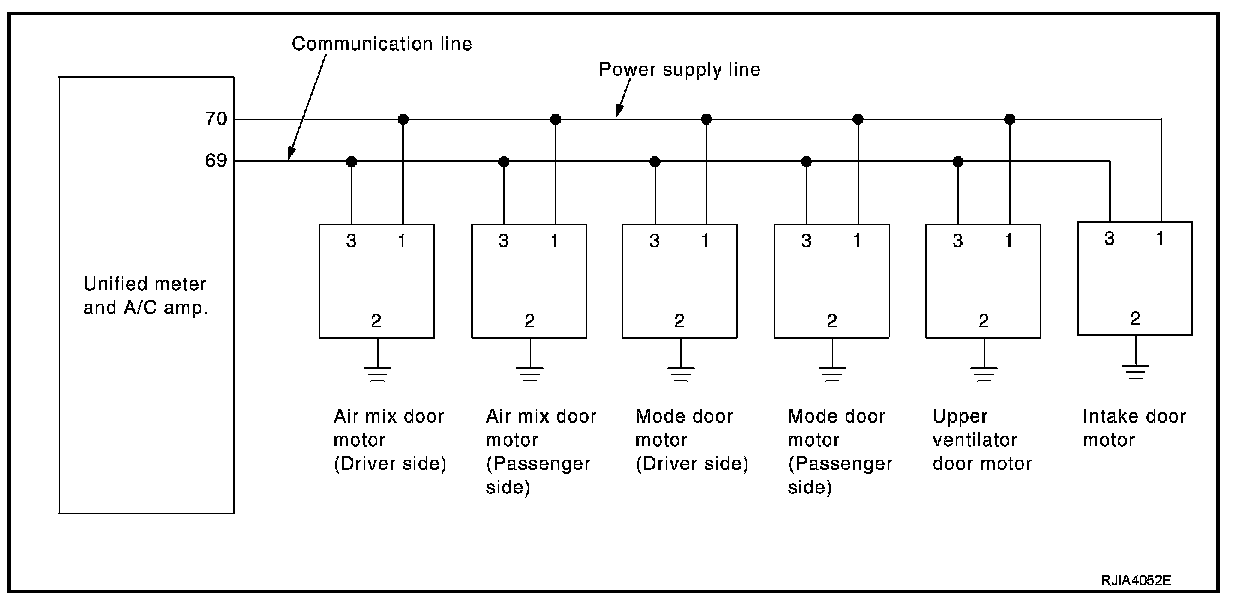 SYMPTOM: Mode door motors, upper ventilator door motor, air mix door motors and intake door motor does not operate normally.