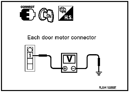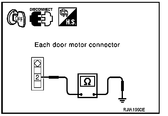 3. Check continuity between each door motor harness connector terminal 2 and ground.