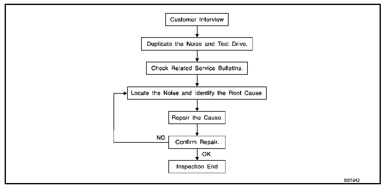 - If it is difficult to duplicate the noise, drive the vehicle slowly on an undulating or rough road to stress the vehicle body.