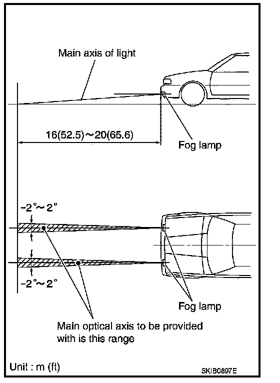 The fog lamp is a semi-sealed beam type which uses a replaceable halogen bulb. Before performing aiming adjustment, make sure of the following.