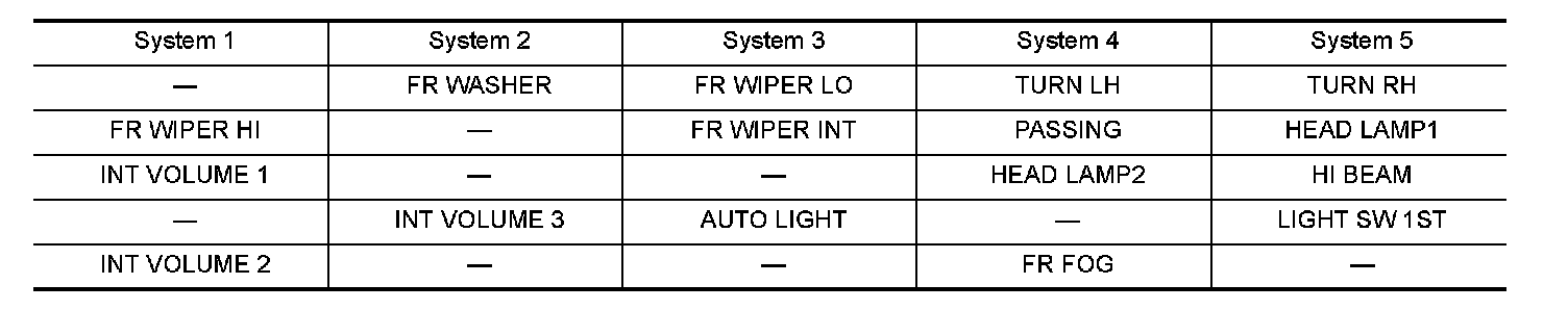 LAMP SW" in System 5, to which HI BEAM switch belongs, turn ON-OFF normally.