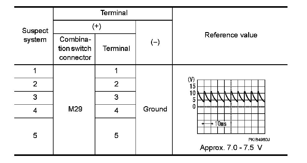 5. Check BCM output terminal voltage waveform of suspect malfunctioning system.