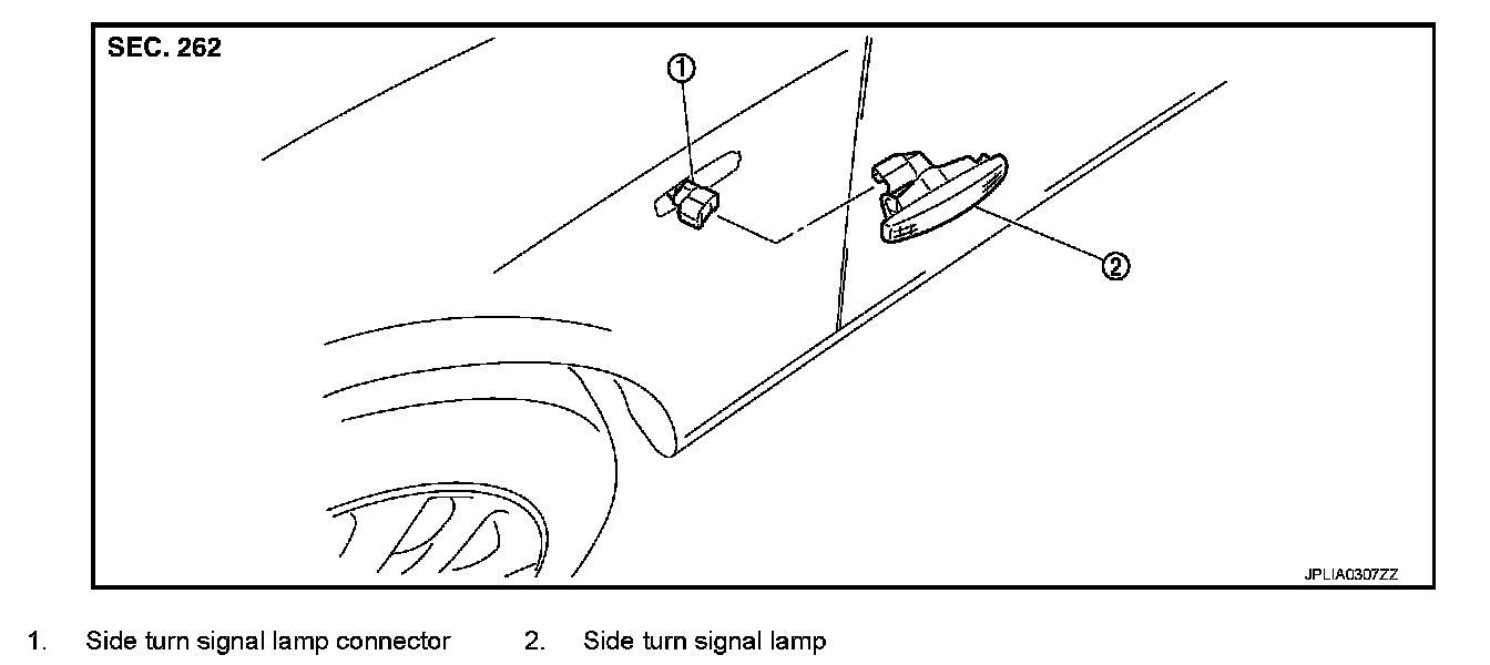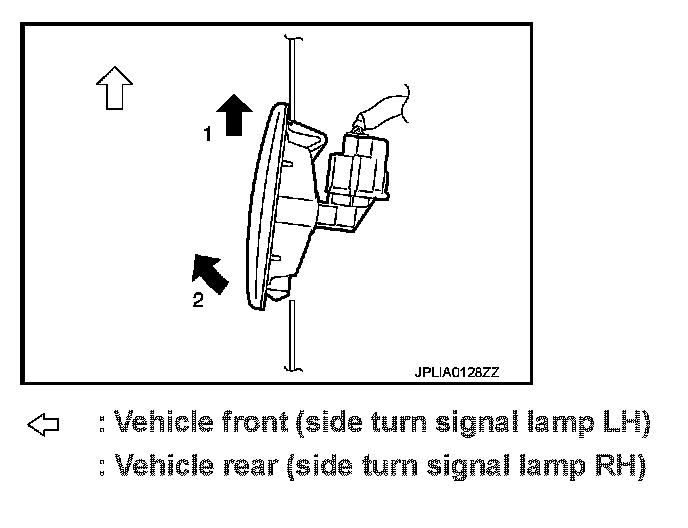 1. Remove the side turn signal lamp in numerical order shown in the figure.