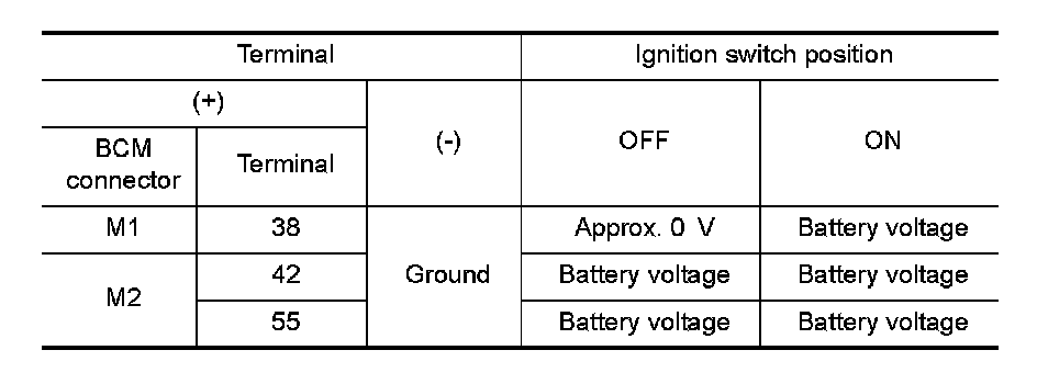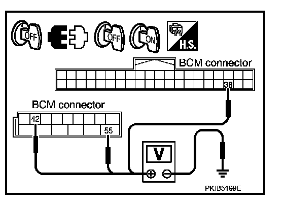 3. Check voltage between BCM harness connector and ground.