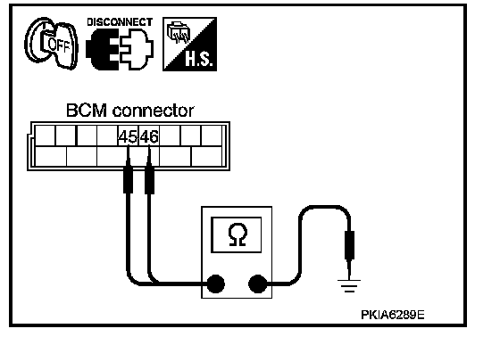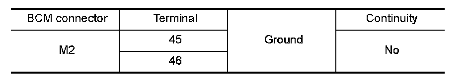 Check continuity between BCM harness connector and ground.