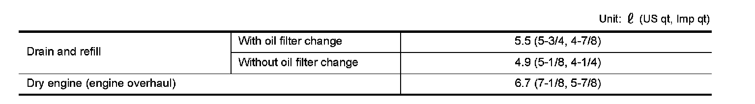 - The refill capacity depends on the engine oil temperature and drain time. Use these specifications for reference only.