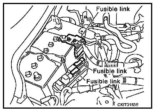 A melted fusible link can be detected either by visual inspection or by feeling with finger tip. If its condition is questionable, use circuit tester or test lamp.