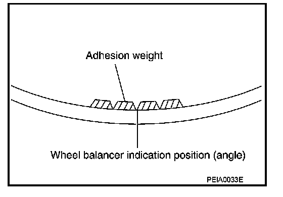 2. When inner and outer unbalance values are shown on the tire balance machine indicator, multiply outer unbalance value by 5/3 to determine balance weight that should be used. Select the outer balance weight with a value closest to the calculated value above and install it to the designated outer position of, or at the designated angle in relation to the road wheel.