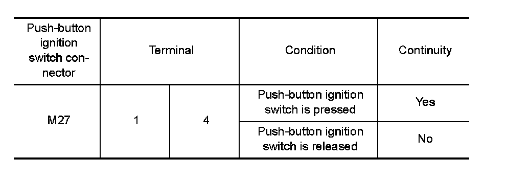 2. Check continuity push-button ignition switch connector.