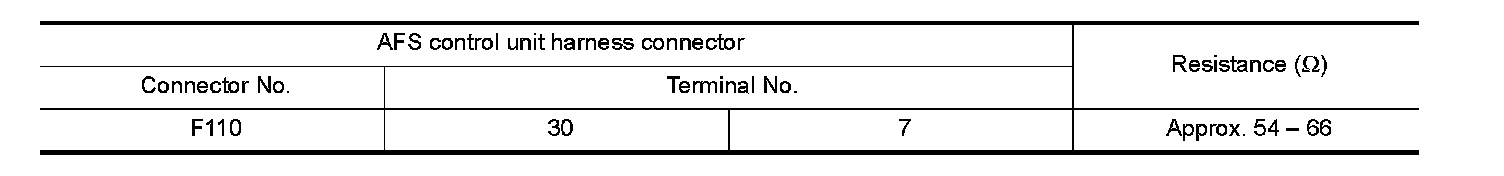 2. Check the resistance between the AFS control unit harness connector terminals.