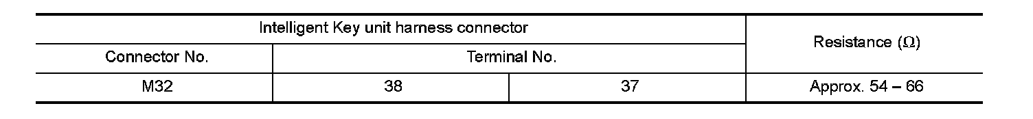 2. Check the resistance between the Intelligent Key unit harness connector terminals.