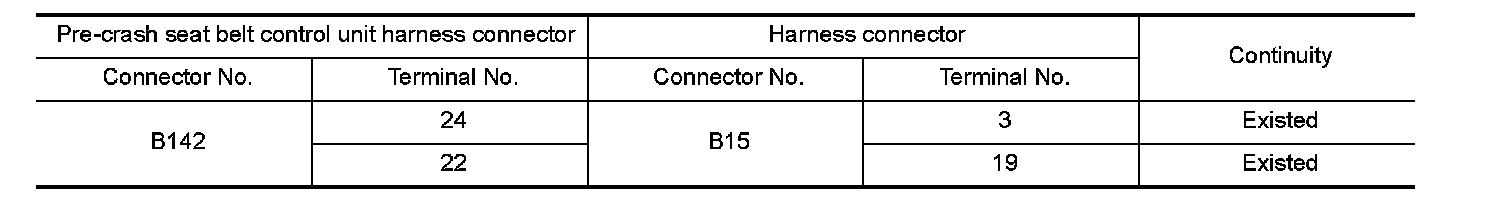 4. Check the continuity between the pre-crash seat belt control unit harness connector and the harness connector.