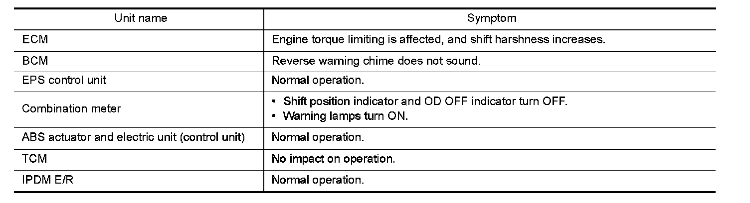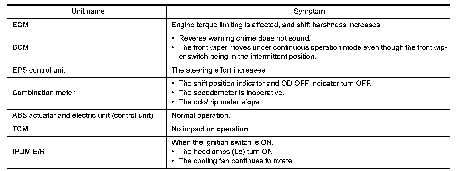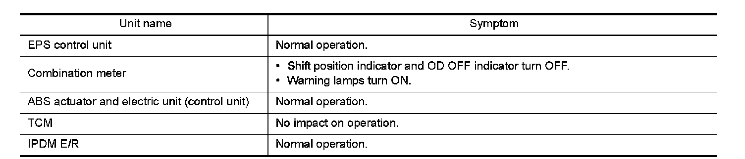 - Each vehicle differs in symptom of each unit under fail-safe mode and CAN communication line wiring.