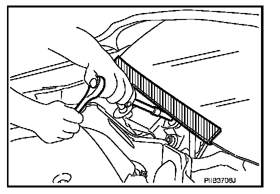 When performing the procedure after removing cowl top cover, cover the lower end of windshield with urethane, etc.