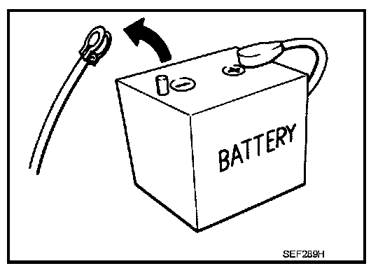 - Before removing parts, turn ignition switch OFF and then disconnect negative battery cable.