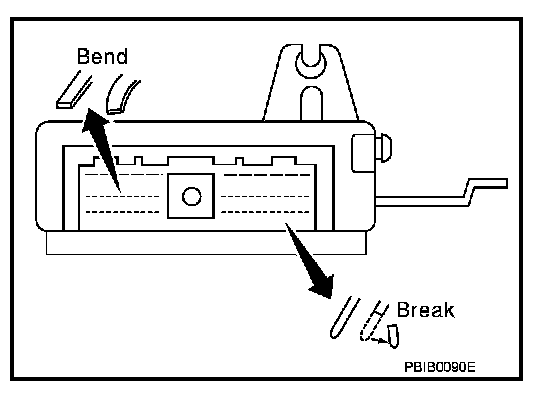- When connecting or disconnecting pin connectors into or from ECM, never damage pin terminals (bends or breaks).