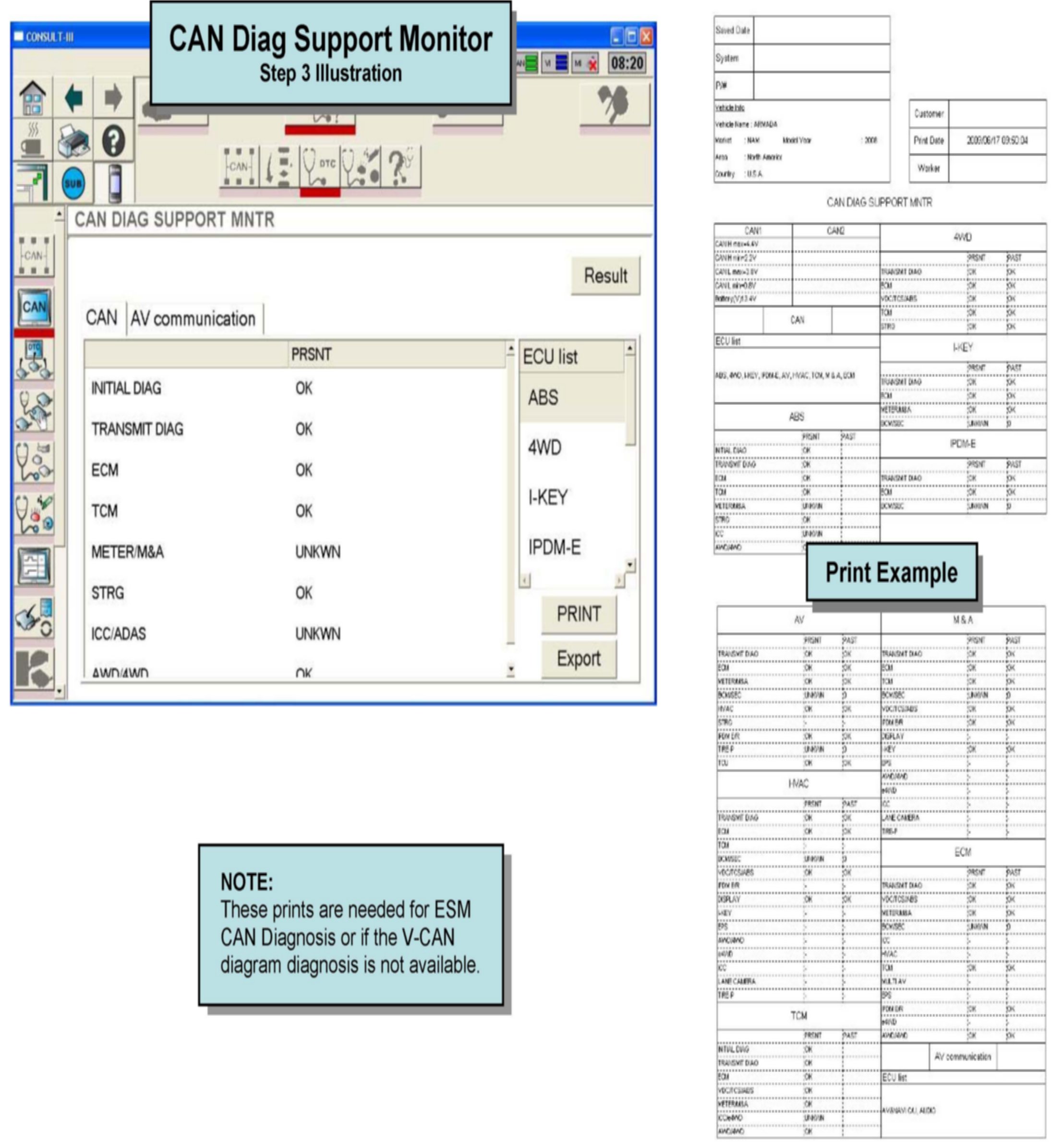 View the V-CAN screen or print all CAN Diag Support Monitors (Shown below).
