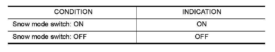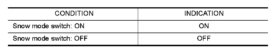 3. Check "SNOW MODE SW" indication under the following conditions.