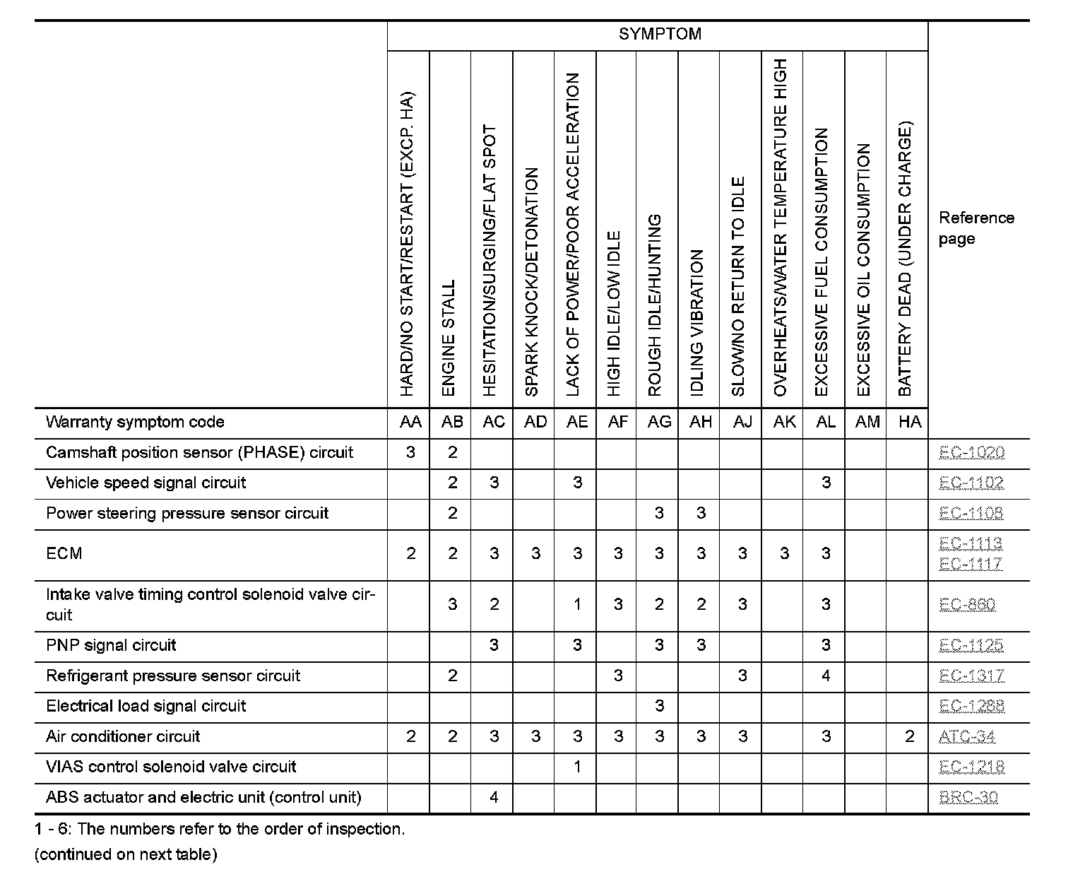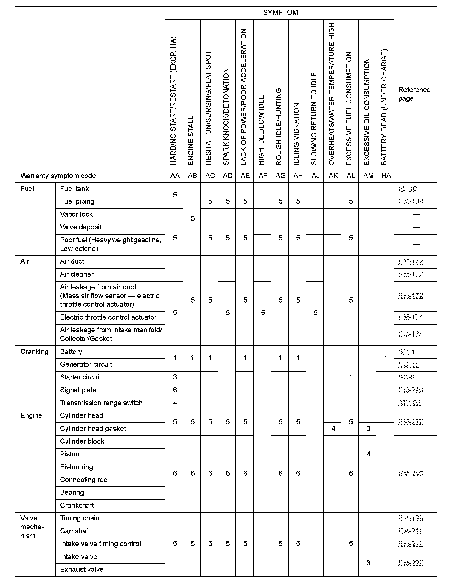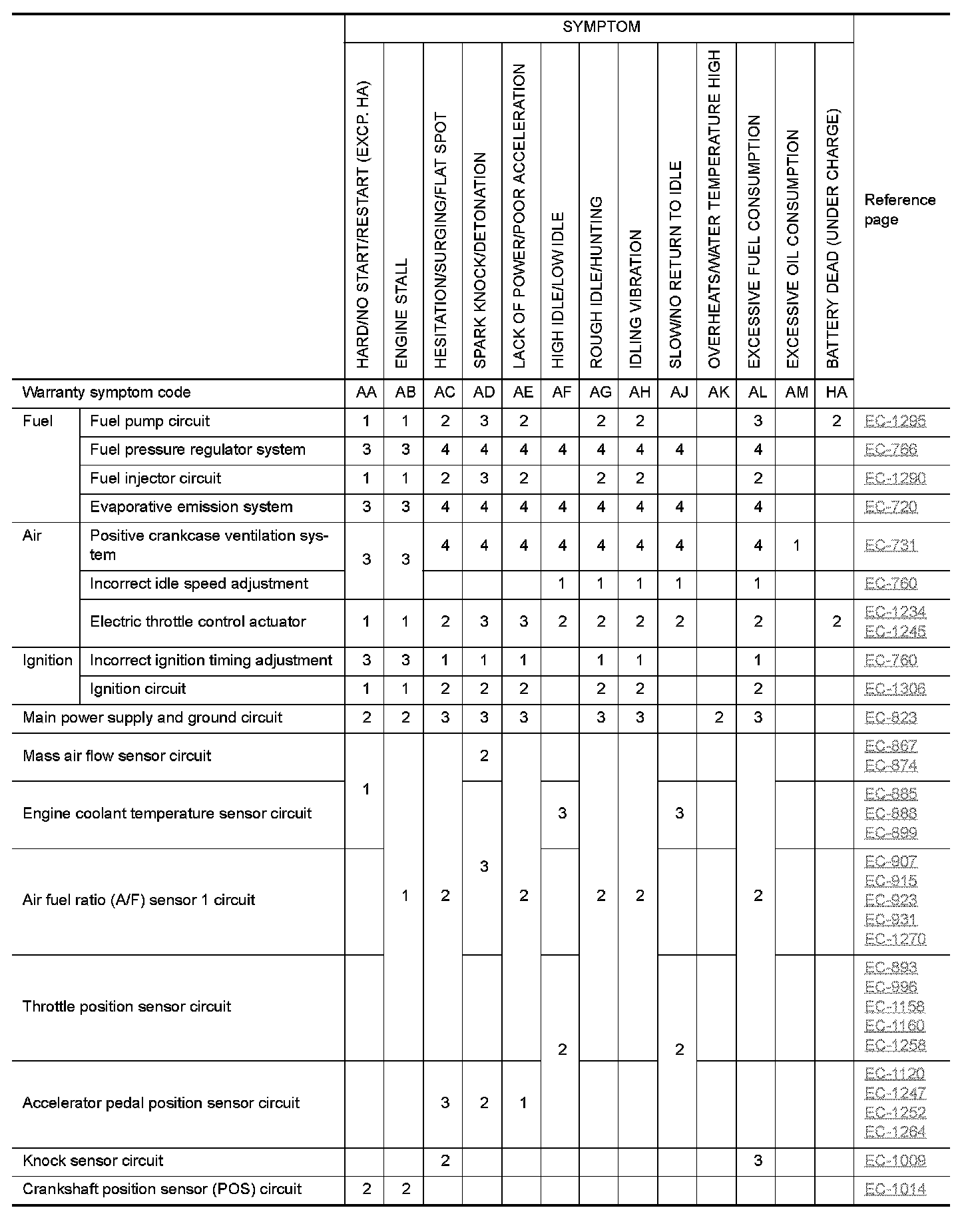 Symptom Matrix Chart - SYSTEM - BASIC ENGINE CONTROL SYSTEM(Part 12: