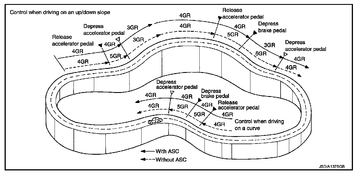 ASC automatically shifts or hold at 3GR or 4GR on certain roads (up/down slope and curve) and driving condition.