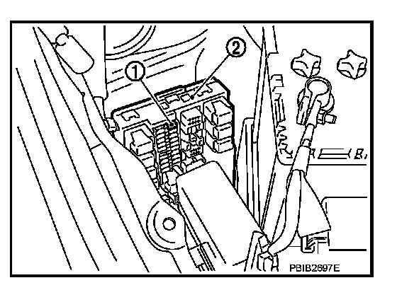 1. Remove fuel pump fuse (1) located in IPDM E/R (2).