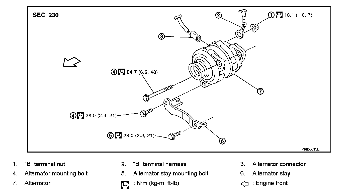 Alternator pulley nut : 118 N�m (12.0 kg-m, 87 ft-lb)
