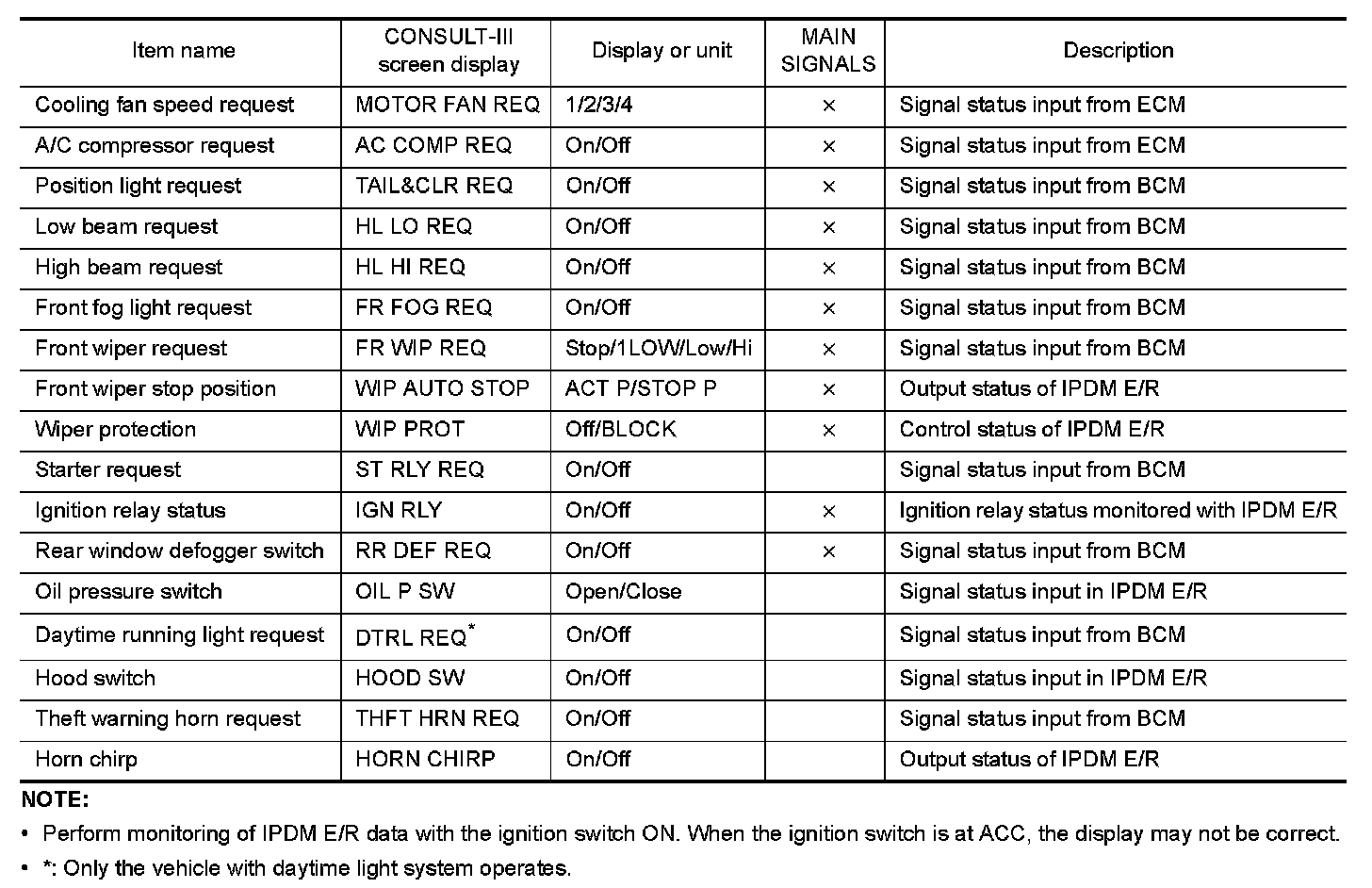 CONSULT-III Function (IPDM E/R)