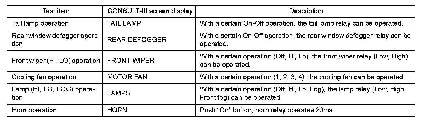 CONSULT-III can display each diagnostic item using the diagnostic test modes shown following.