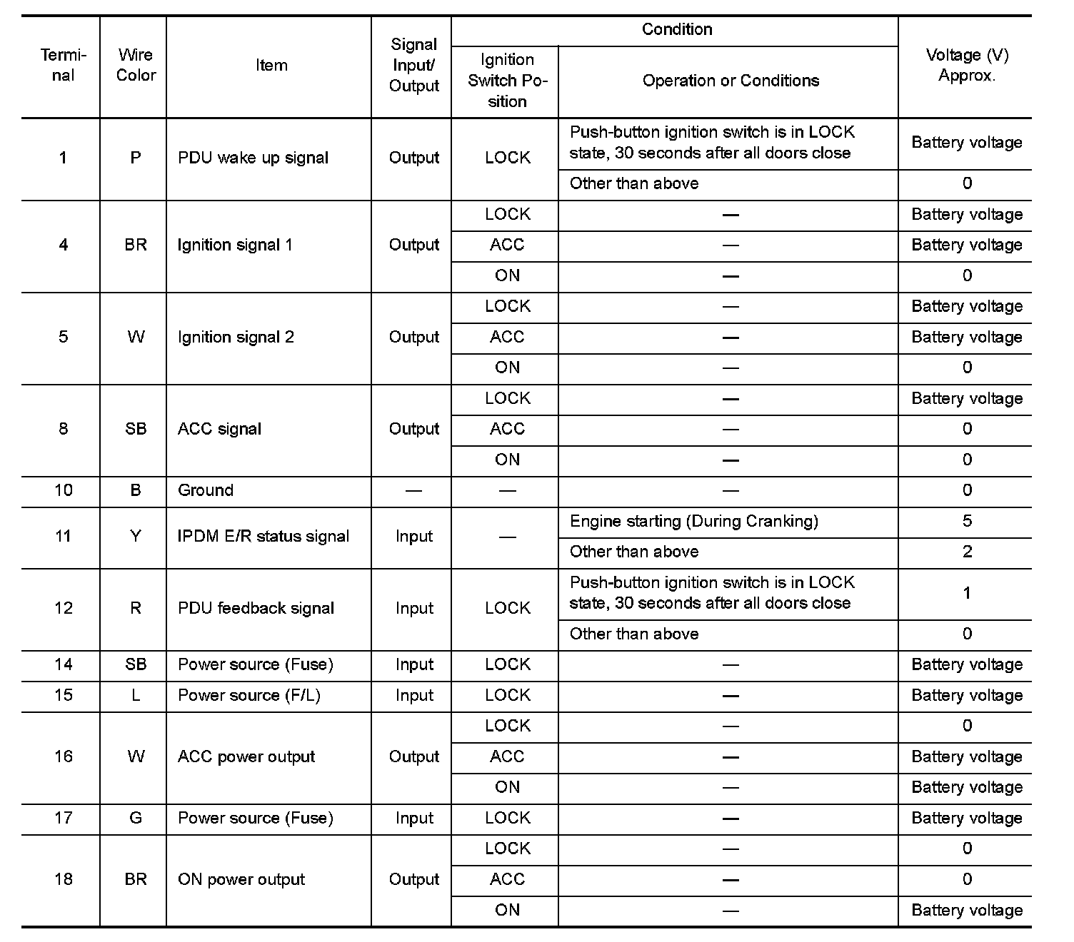 Pinout Values and Diagnostic Parameters