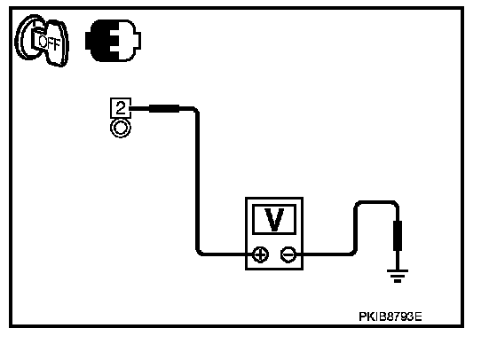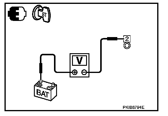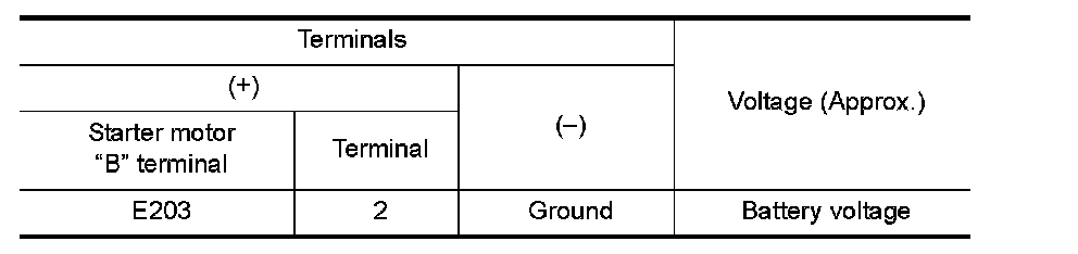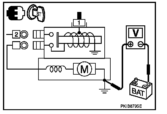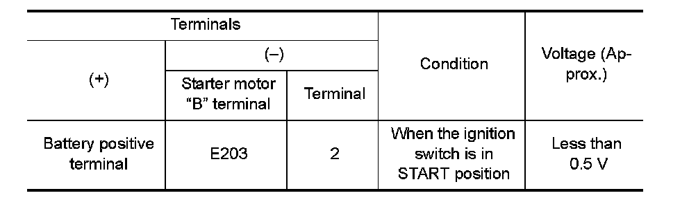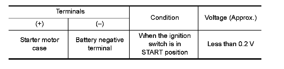 2. Check voltage between starter motor case and battery negative terminal.