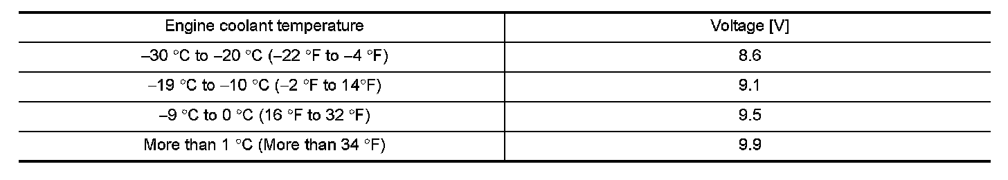 MINIMUM SPECIFICATION OF CRANKING VOLTAGE REFERENCING COOLANT TEMPERATURE