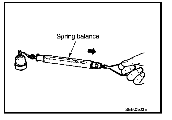 - Hook a spring balance at cutout on ball stud. Confirm spring balance measurement value is within specifications when ball stud begins moving.
