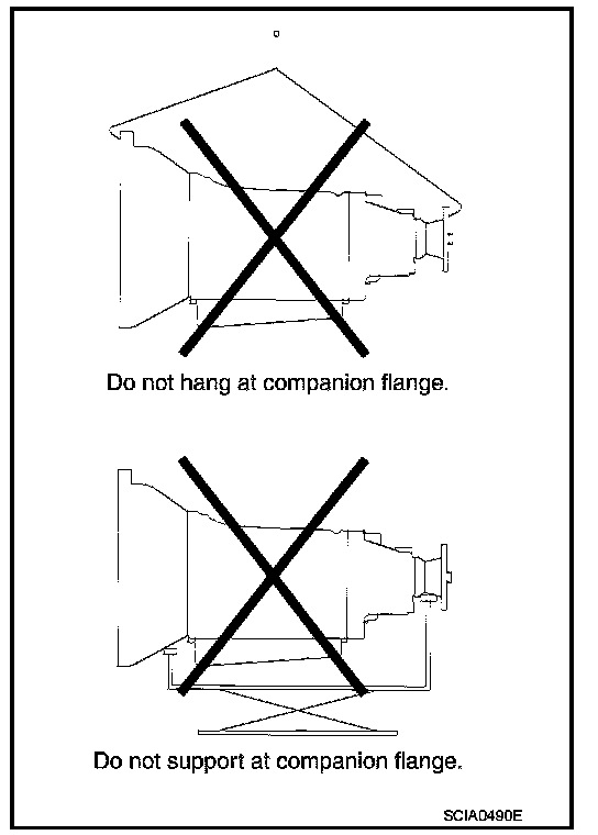 - When removing the transmission from a vehicle, do not use the companion flange section at the rear end of the transmission as a support point. (VK45DE models only)
