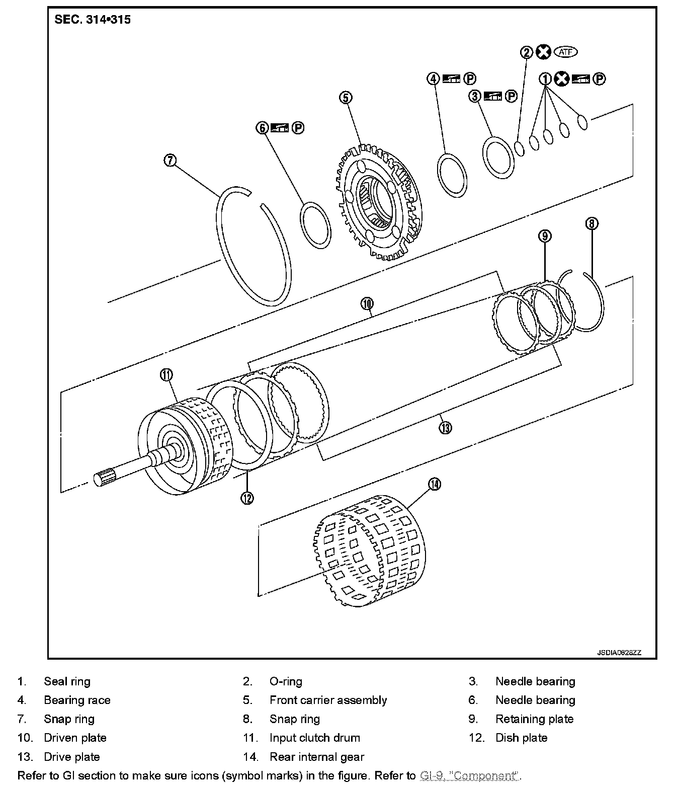 4. Disassemble input clutch assembly.