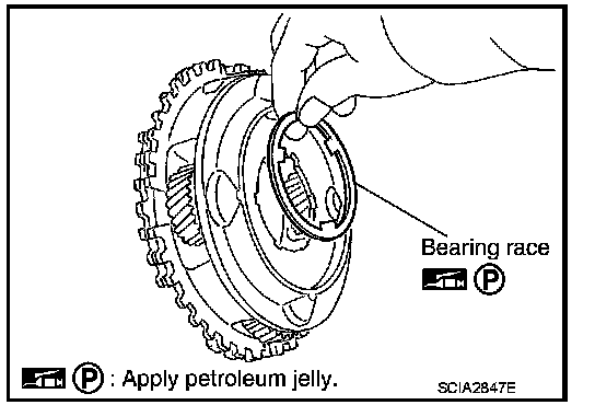 Apply petroleum jelly to bearing race.