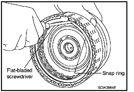 c. Using a flat-bladed screwdriver, remove snap ring from input clutch drum.