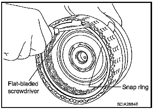 1. Compress snap ring using 2 flat-bladed screwdrivers.
