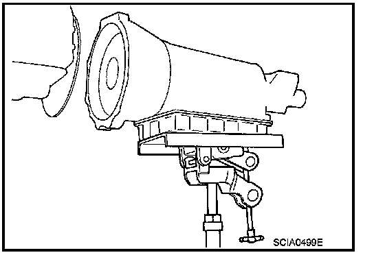 13. Support A/T assembly with a transmission jack.