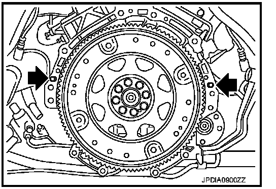 - When tightening the tightening bolts for the torque converter after fixing the crankshaft pulley bolts, be sure to confirm the tightening torque of the crankshaft pulley mounting bolts. Refer to Exploded View.