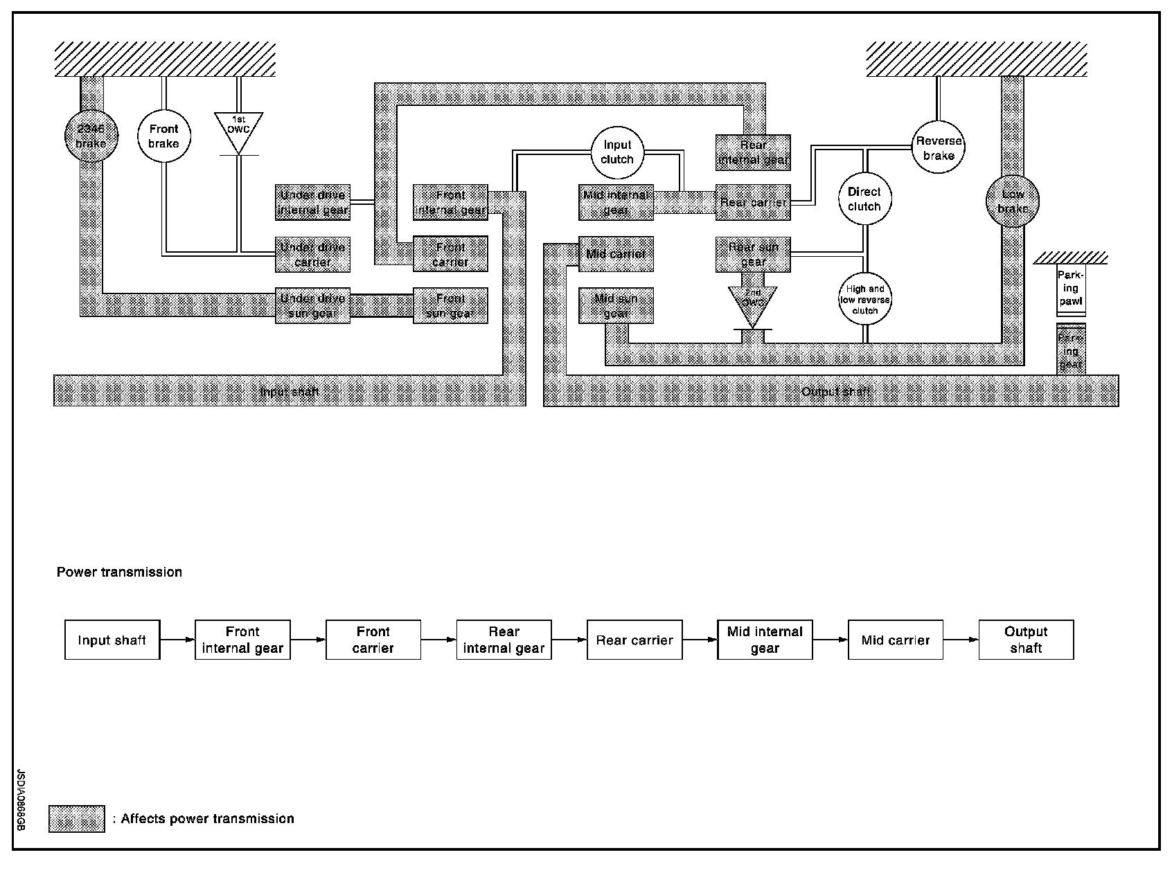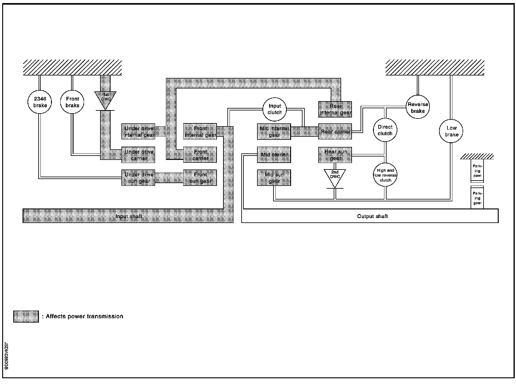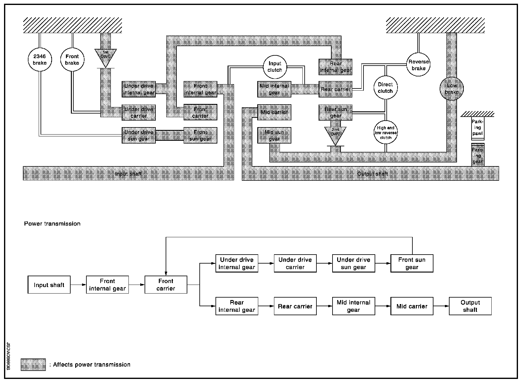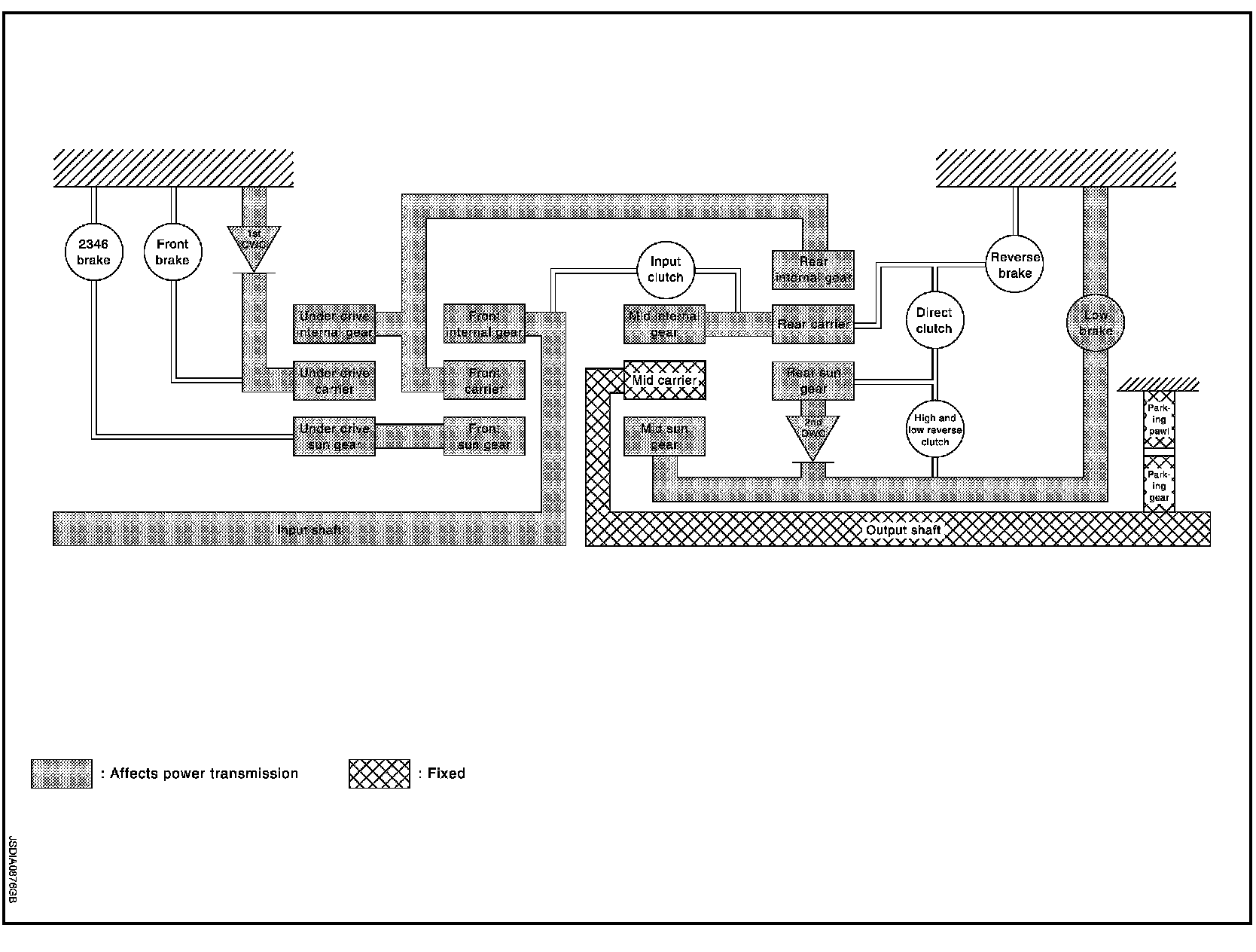 - The same as for the "N" position, since the low brake is released, so torque from the input shaft drive is not transmitted to the output shaft.