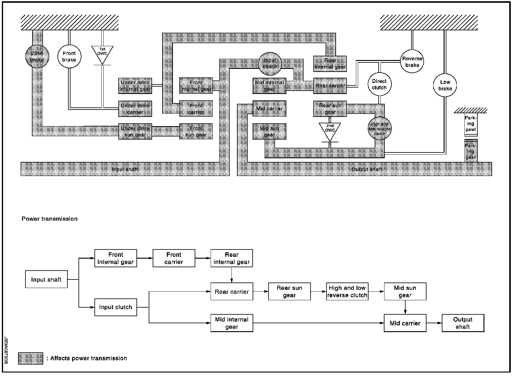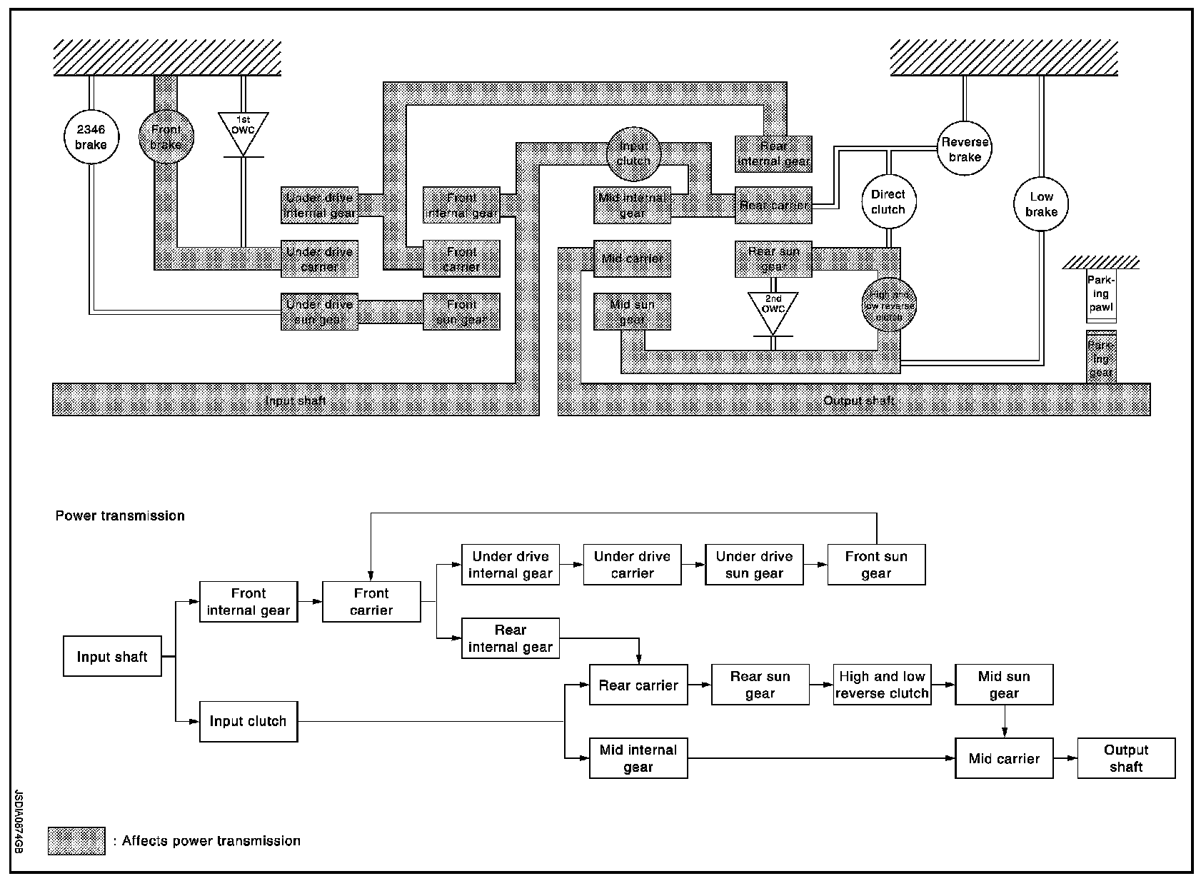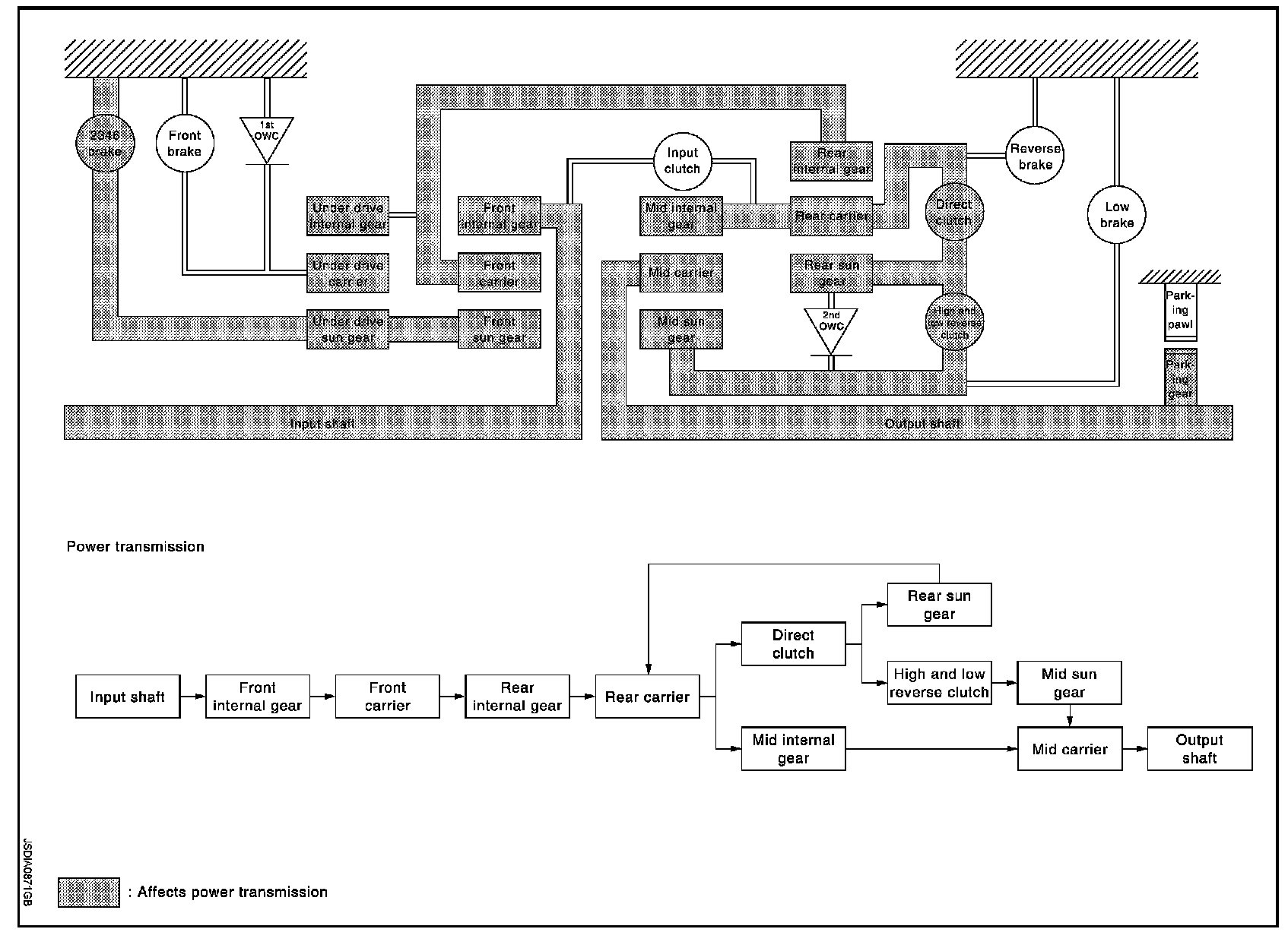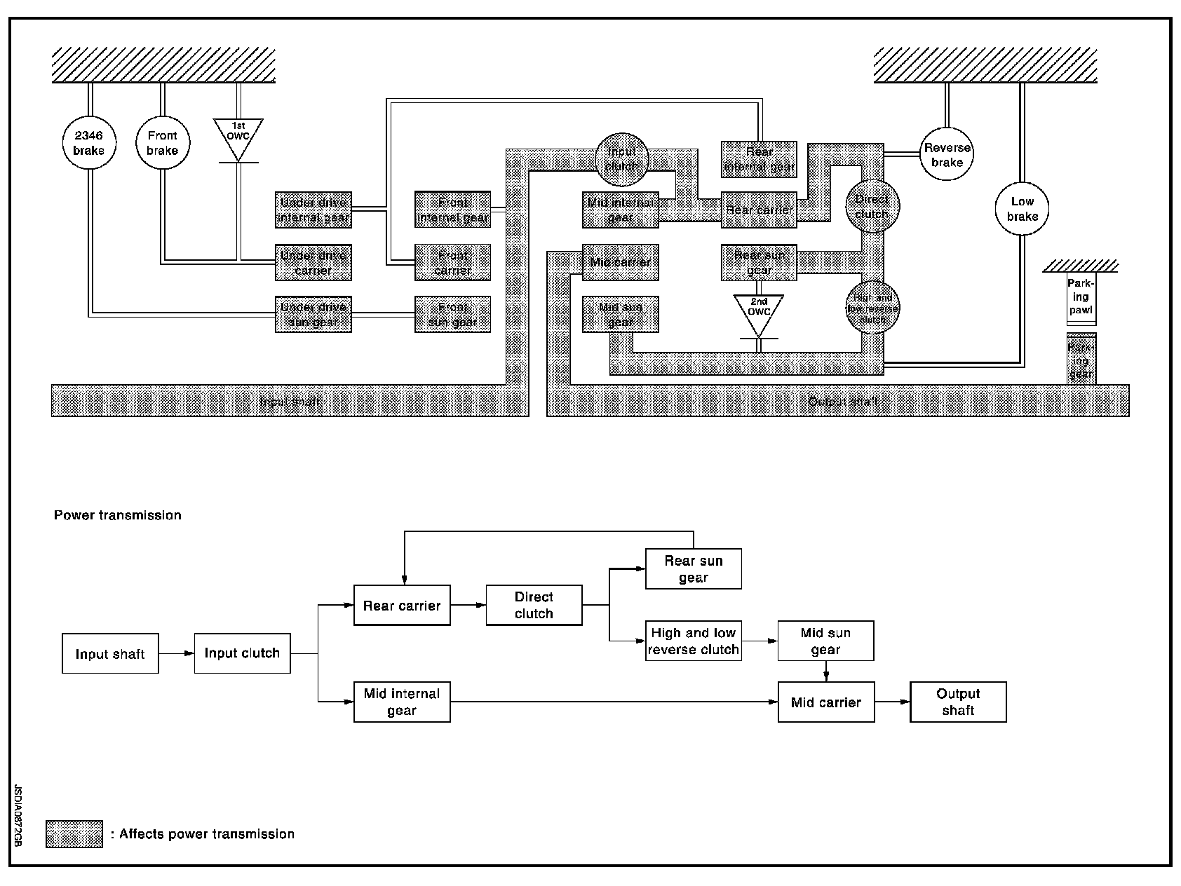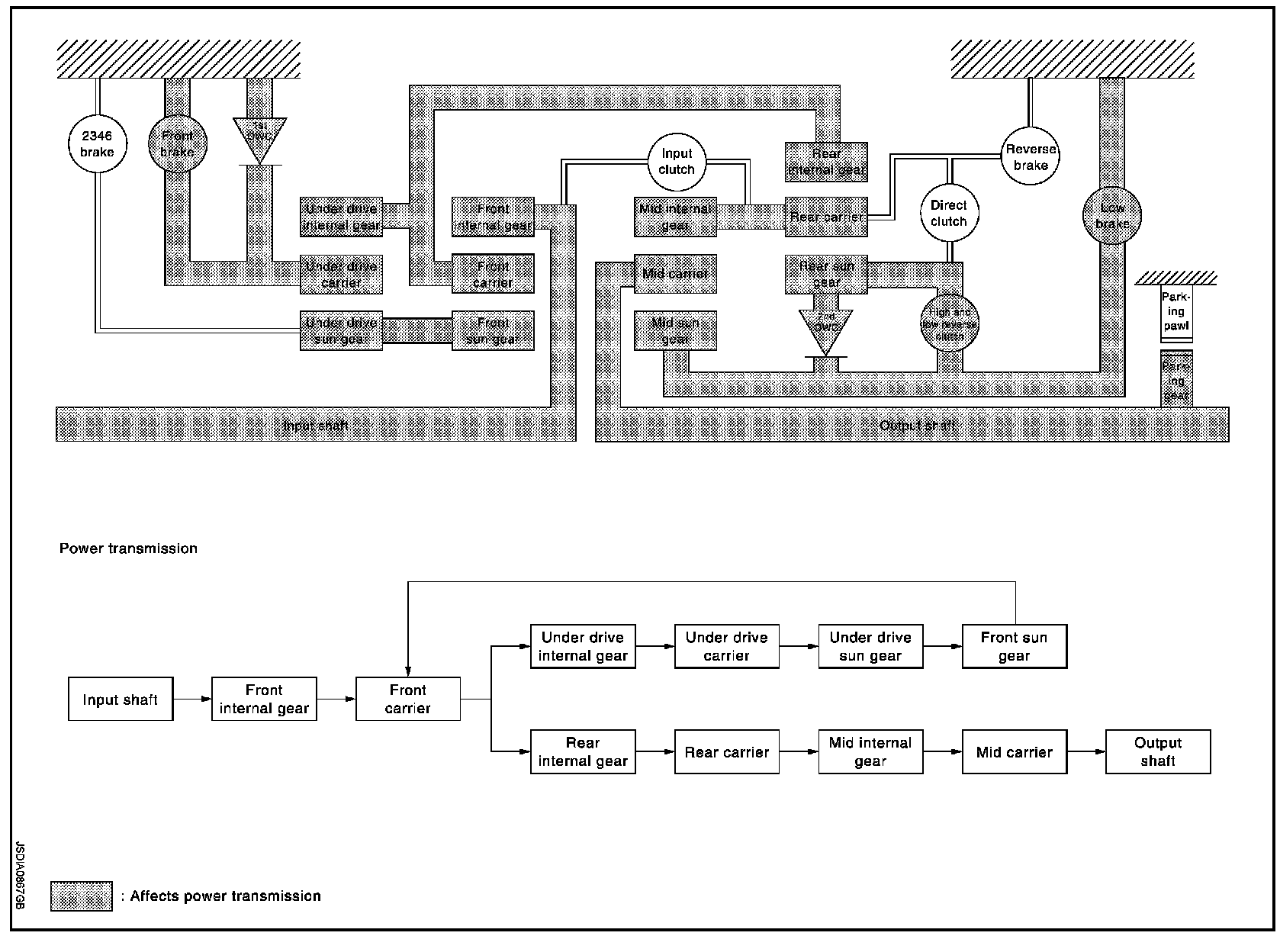 - The same as for the "N" position, since the low brake is released, so torque from the input shaft drive is not transmitted to the output shaft.