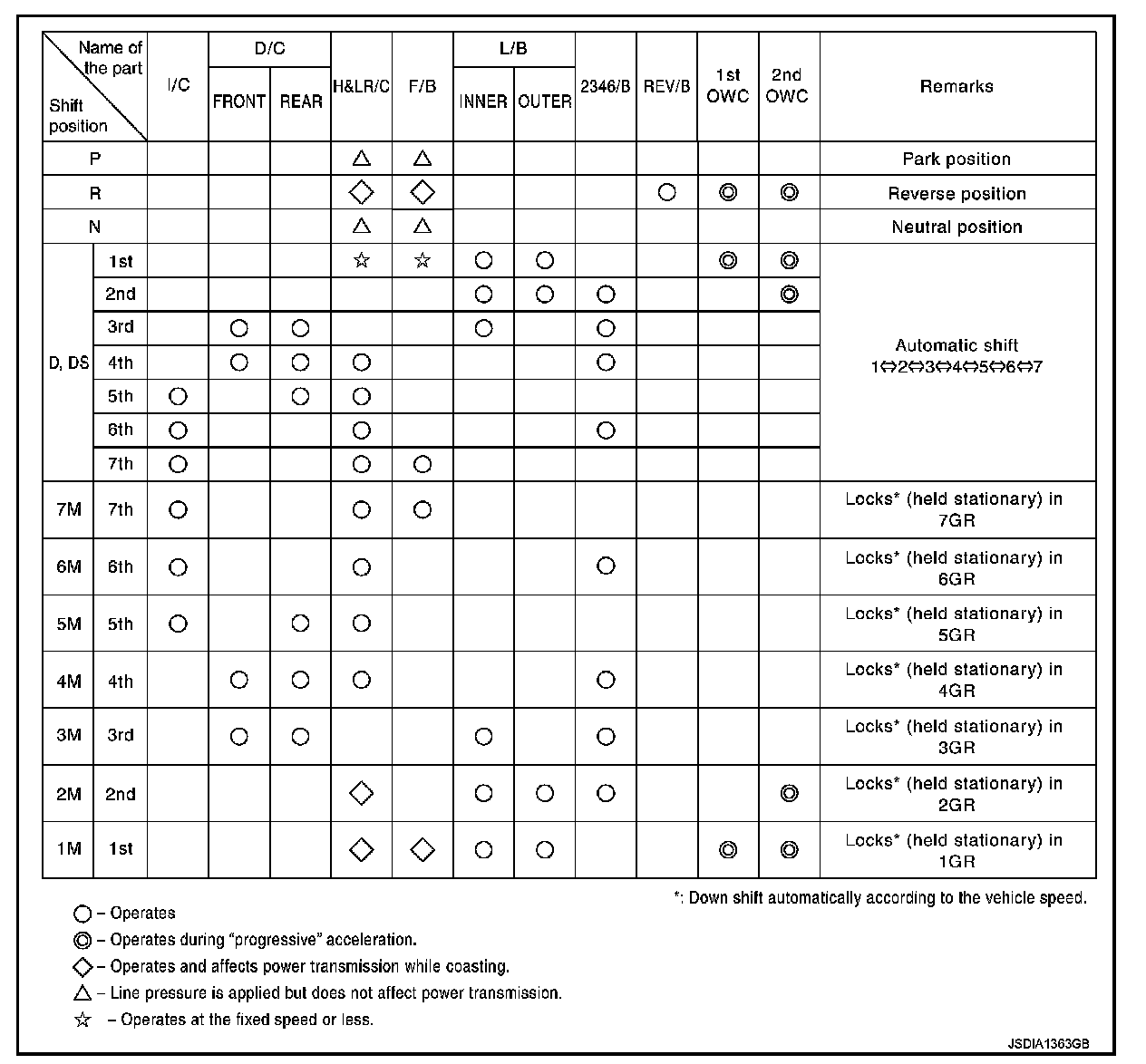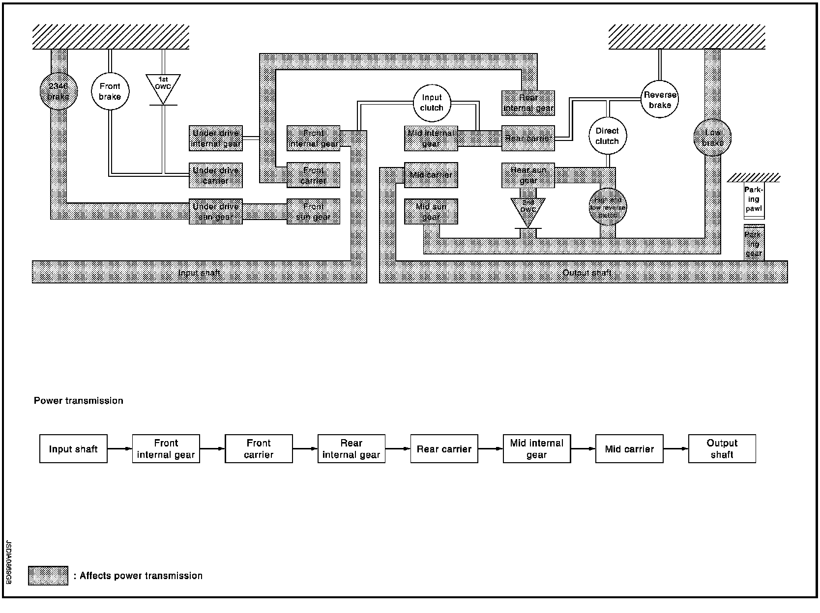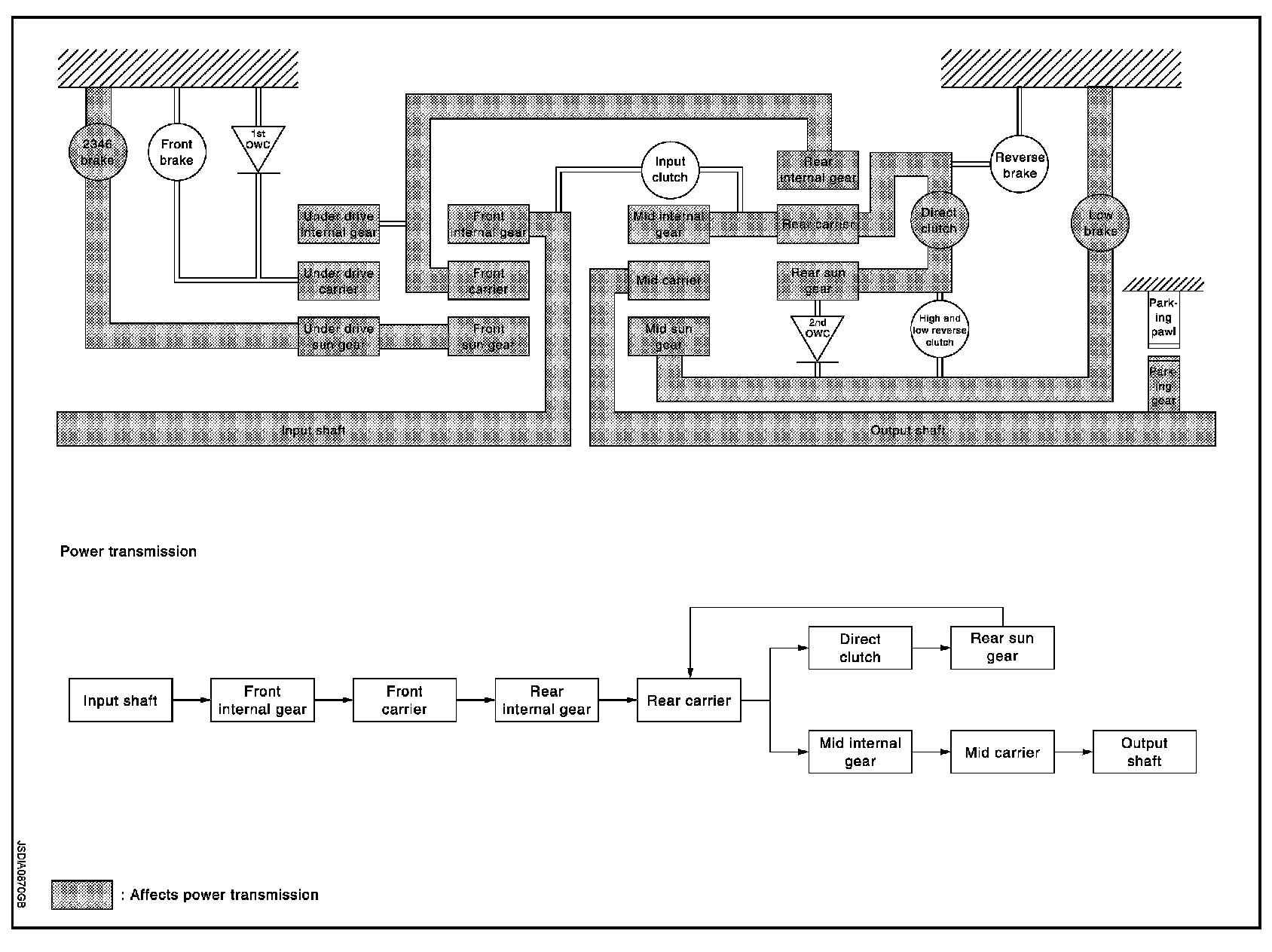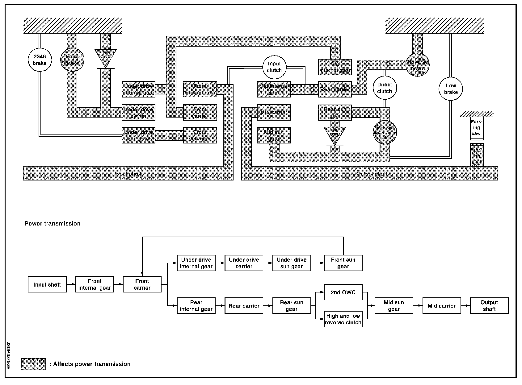 - The same as for the "N" position, since the low brake is released, so torque from the input shaft drive is not transmitted to the output shaft.