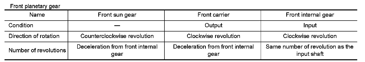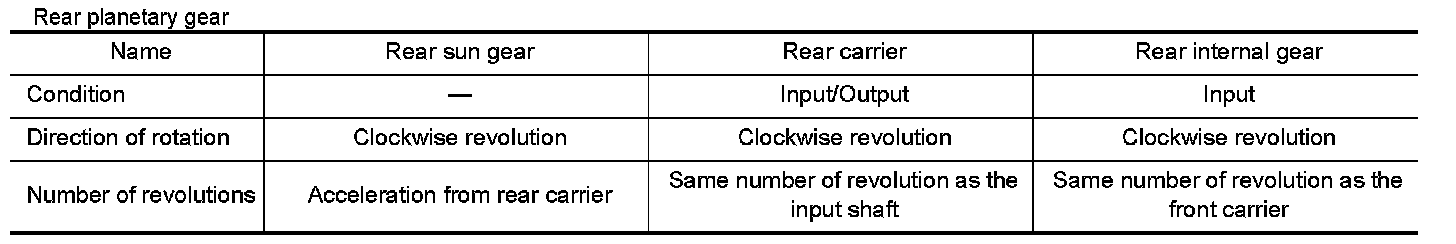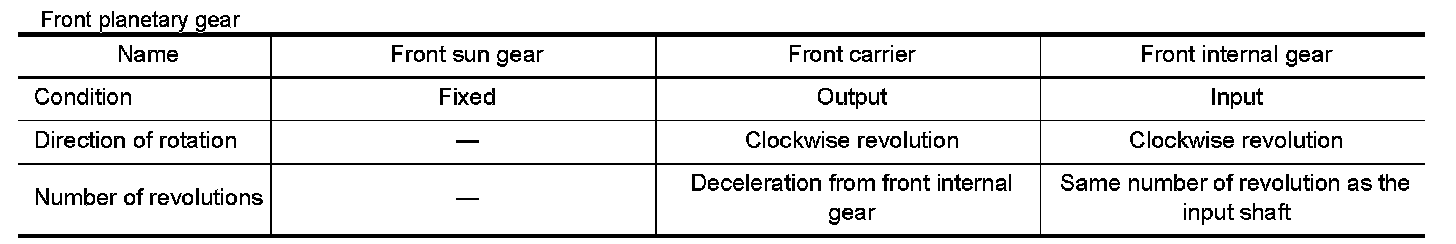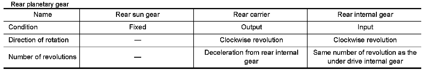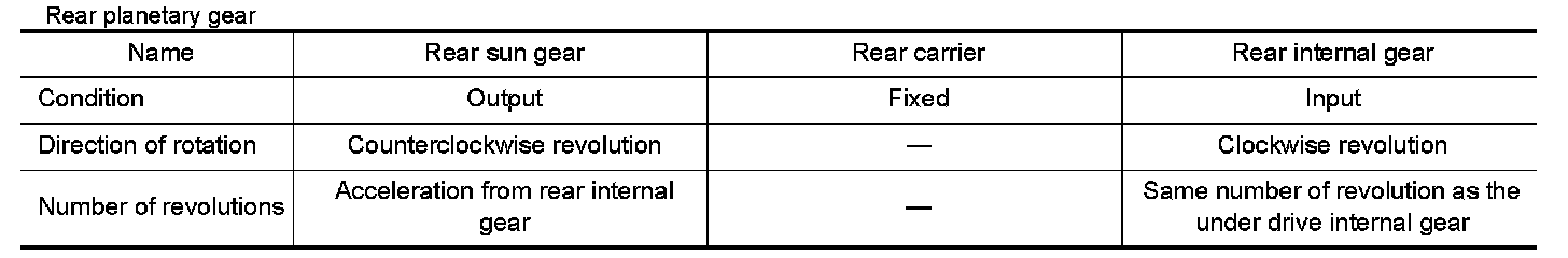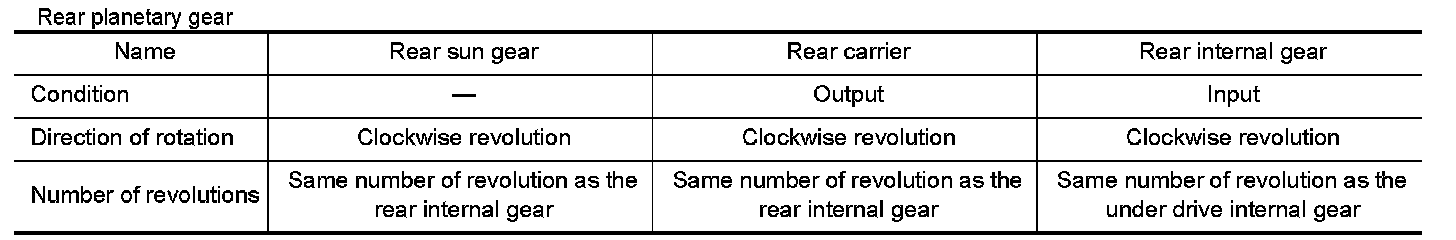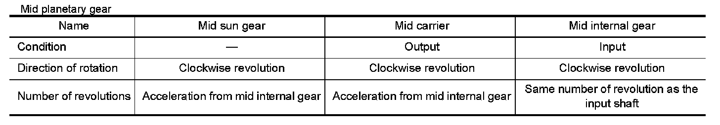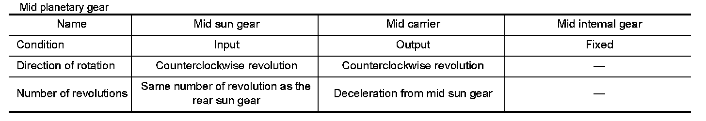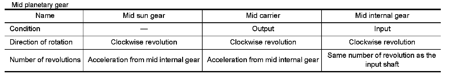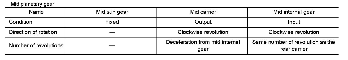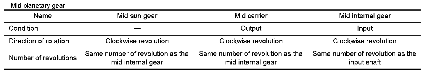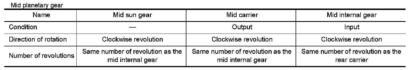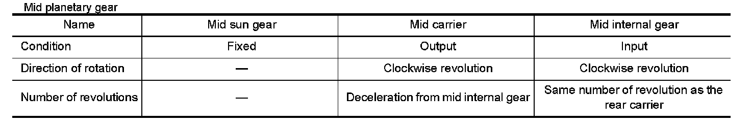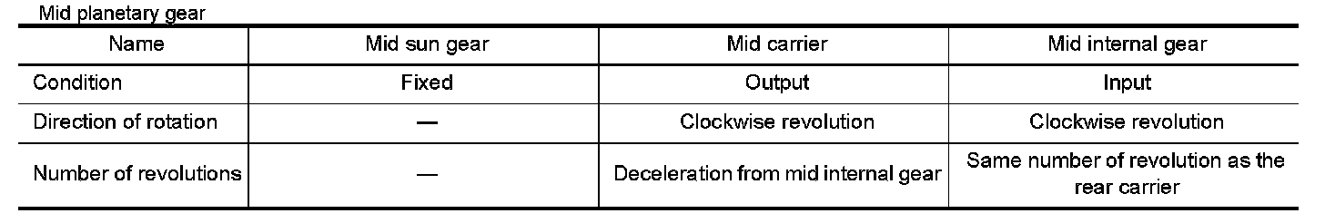 - The rear carrier and the mid internal gear are fixed by the reverse brake.