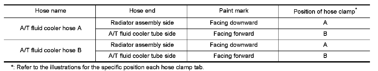 - Refer to the following when installing A/T fluid cooler hoses.