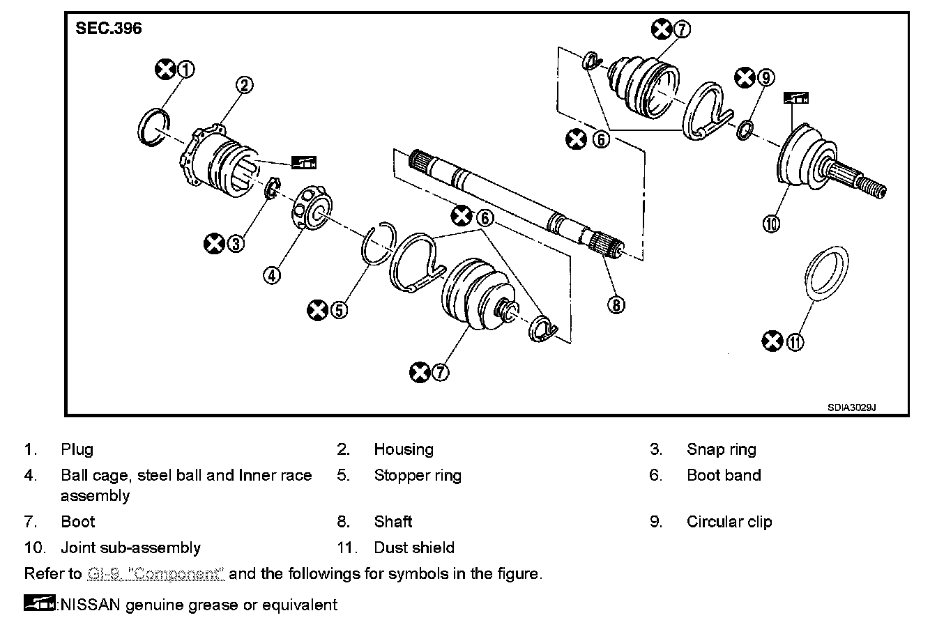 - Check the inside of the joint sub-assembly for entry of foreign material.