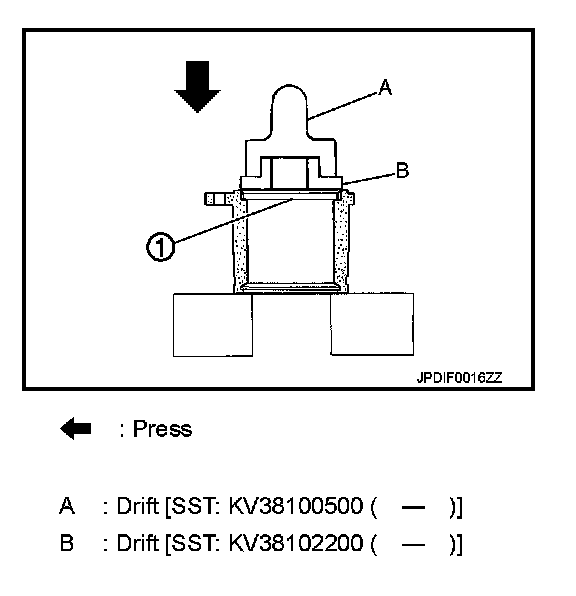 1. If plug (1) has been removed, use a drift to press in a new one.