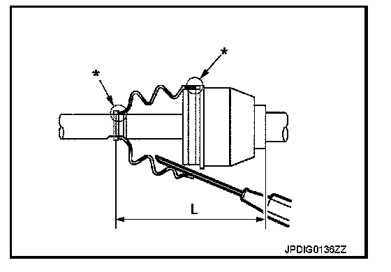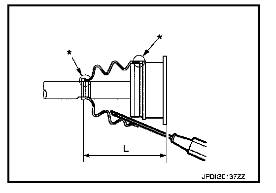 7. Make sure boot installation length "L" is the length indicated below. Insert a flat-bladed screwdriver or similar tool into inside of boot from the large diameter side of the boot. Bleed air from boot to prevent boot deformation.
